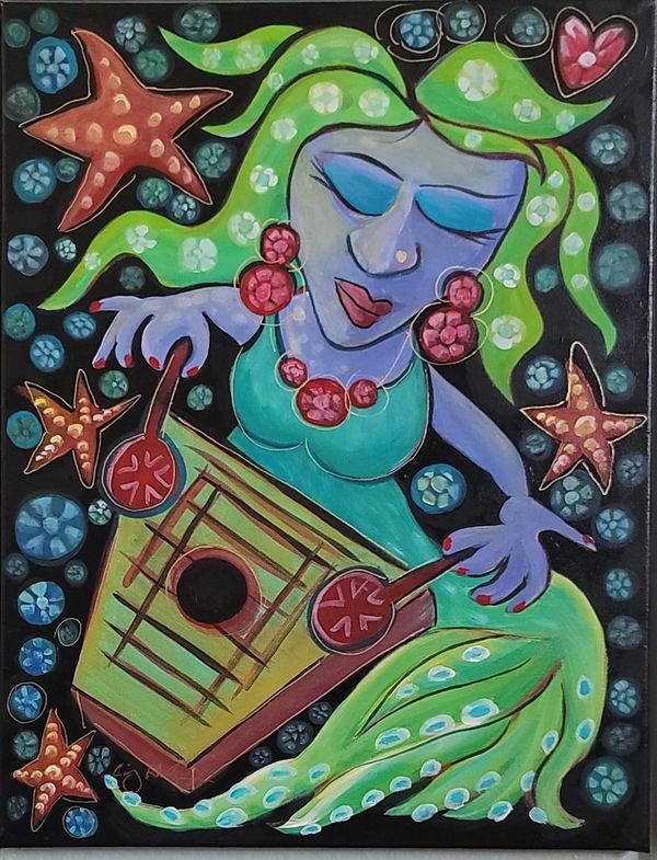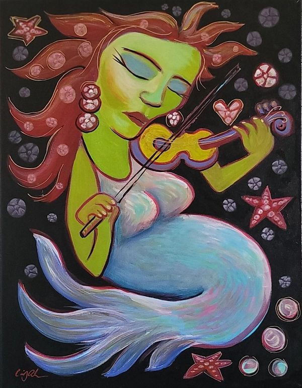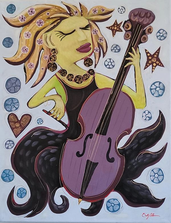 FIRST PRIZE at the Artesia NM Centennial Oil & Gas Art Show, painted cello by Cindy Rhodes